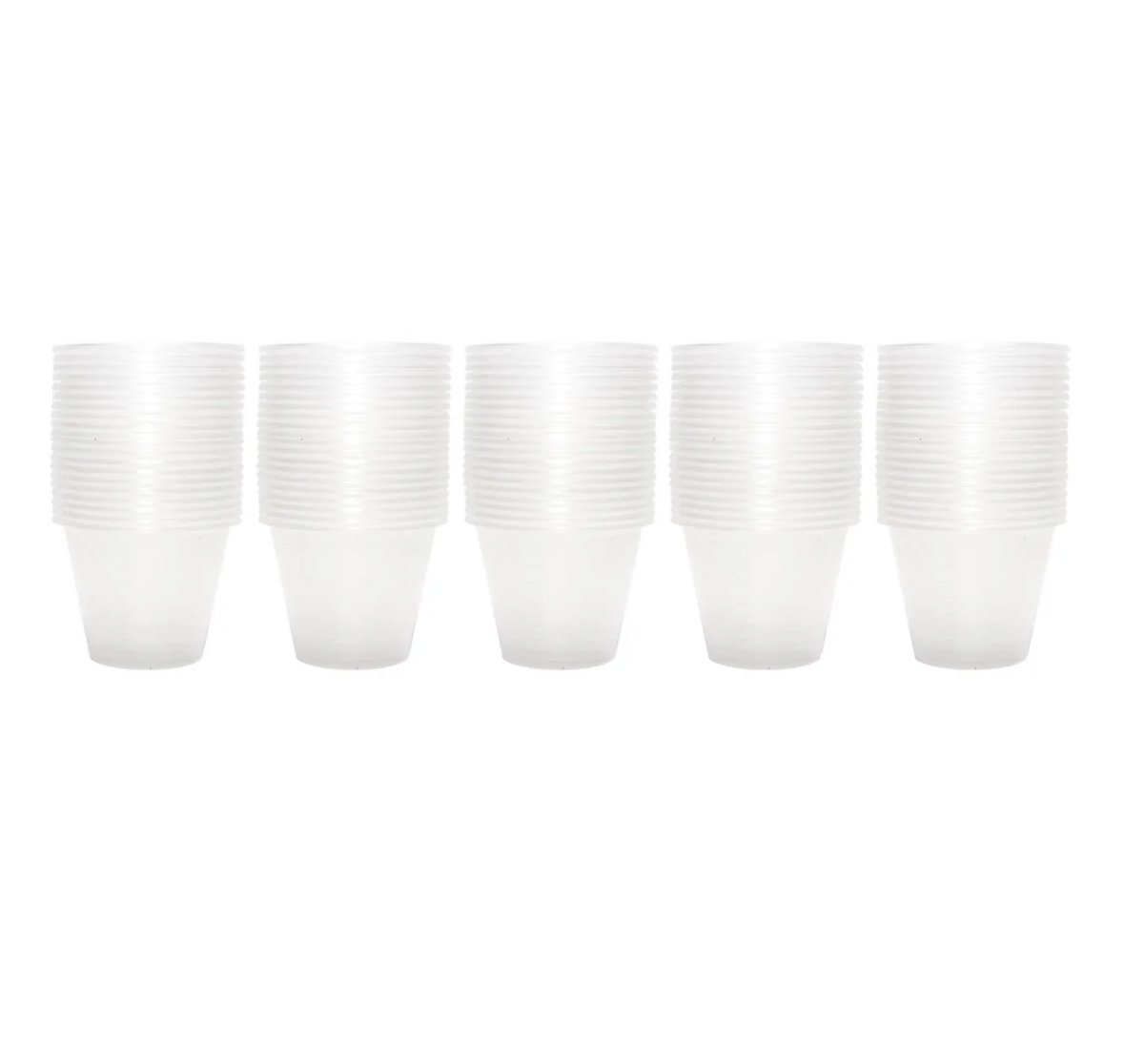 • Clear cups with measurement markings for precision